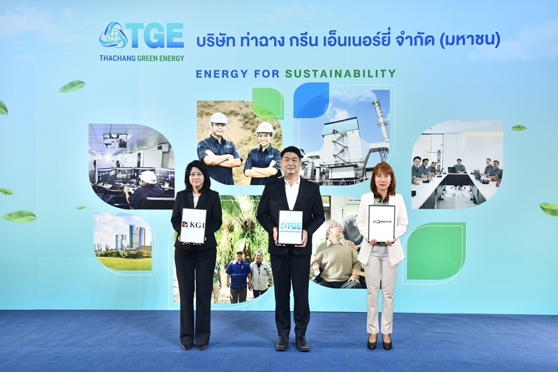 นายพงศ์นรินทร์ วนสุวรรณกุล (กลาง) ประธานกรรมการบริหาร บริษัท ท่าฉาง กรีน เอ็นเนอร์ยี่ จำกัด (มหาชน) หรือ TGE นางรัชดา เกลียวปฏินนท์ (ซ้าย) กรรมการผู้จัดการ ฝ่ายวาณิชธนกิจ2 บริษัทหลักทรัพย์ เคจีไอ (ประเทศไทย) จำกัด (มหาชน) ในฐานะที่ปรึกษาทางการเงิน และนางยอดฤดี สันตติกุล (ขวา) กรรมการบริหาร บริษัทหลักทรัพย์ เอเซีย พลัส จำกัด ร่วมในพิธีลงนามสัญญาแต่งตั้ง บริษัทหลักทรัพย์ เอเซีย พลัส จำกัด เป็นผู้จัดการการจัดจำหน่ายและรับประกันการจำหน่ายหุ้นสามัญเพิ่มทุน รวมทั้งแต่งตั้ง บริษัทหลักทรัพย์ เคจีไอ (ประเทศไทย) จำกัด (มหาชน), บริษัทหลักทรัพย์ กรุงไทย เอ็กซ์สปริง จำกัด, บริษัทหลักทรัพย์ ทรีนีตี้ จำกัด และบริษัทหลักทรัพย์ พาย จํากัด (มหาชน) เป็นผู้จัดจำหน่ายและรับประกันการจำหน่าย โดย TGE จะเสนอขายหุ้น IPO จำนวนไม่เกิน 600 ล้านหุ้น ในราคาหุ้นละ 2 บาท กำหนดจองซื้อในวันที่ 9 – 11 สิงหาคม 2565 และคาดว่าจะนำหุ้นเข้าซื้อขายในตลาดหลักทรัพย์ฯ ภายในเดือนสิงหาคมนี้